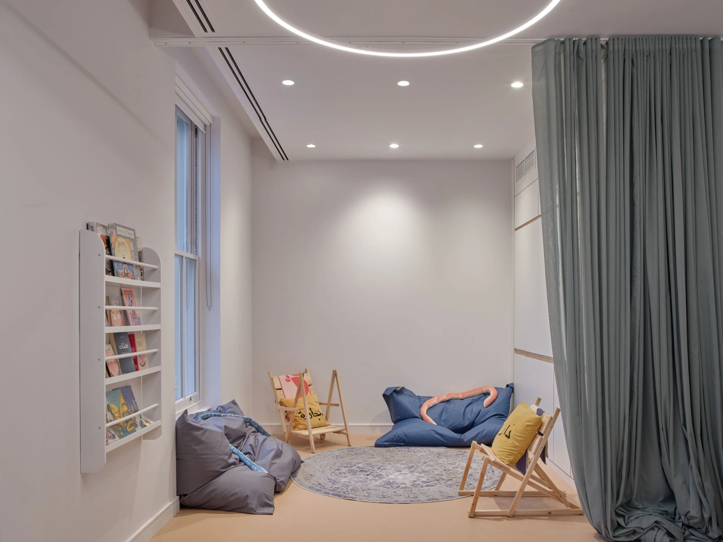The commission arrived at a moment of organisational change and growth. Mosaic Rooms sought to unify what had been a mixed‑use building - offices, a residential flat, gallery spaces, and several sublet units - into one coherent cultural institution. The brief called for a more welcoming building, improved accessibility across all levels, increased usable space, and a dedicated new PlayLab for creative learning. A further aim was to enhance revenue generation, particularly by enlarging the bookshop and identifying underused areas with potential for future income.
