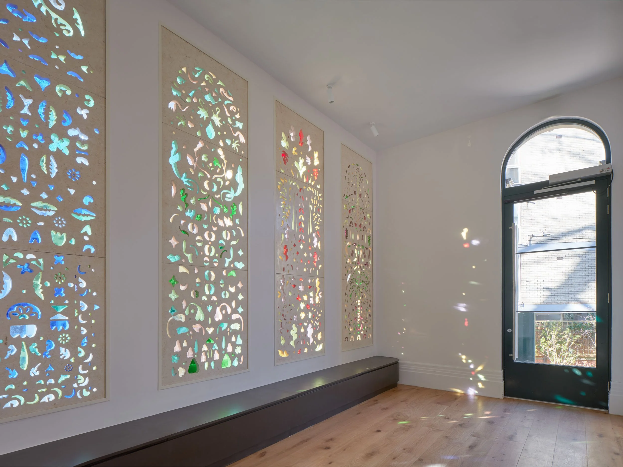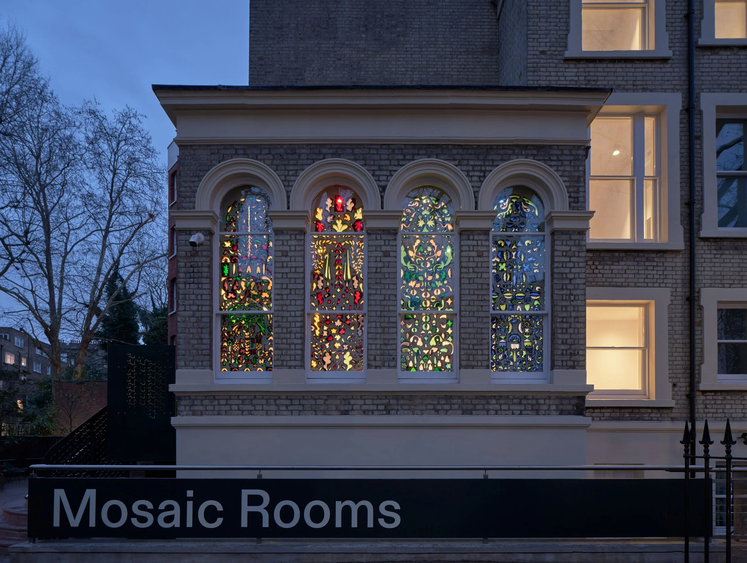 This project marks the completion of a significant two‑year commission for Mosaic Rooms, a charitable organisation dedicated to promoting contemporary arts and culture from the Arab world. Mosaic Rooms occupies The Tower House, a prominent Victorian building at the corner of Cromwell Road and Earl’s Court Road, within the South Kensington Conservation Area. Designed by the architect of Earl’s Court as a commanding presence overlooking nineteenth‑century construction sites, the building is historic and architecturally impressive, yet its imposing character sat at odds with the warmth and openness central to Mosaic Rooms’ public programme.